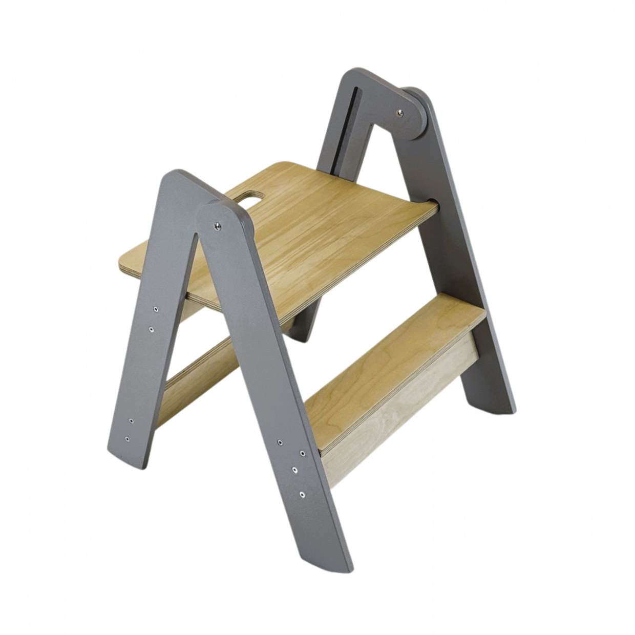Thoughtfully designed for children, it’s easy to carry, quick to set up, and light enough for little hands to move on their own.</p><p>Whether your child wants to reach the sink, help out in the kitchen, or get something from a higher shelf, this step stool gives them that bit of independence – safely and confidently. And when it’s not in use? It folds down flat and tucks into the corner like it was never there.</p><p>________________________________________</p><p>Where families use it most:</p><p>• In the kitchen – for helping with cooking or reaching the countertop</p><p>• In the bathroom – to brush teeth or wash hands independently</p><p>• Near shelves or storage – for everyday items just out of reach</p><p>• For arts & crafts – as a quick, sturdy seat or support</p><p>• In shared spaces – moves easily between rooms as needed</p><p><br></p><p>Materials: FSC certified birch plywood, metal hardware</p><p>Finish: Child-safe lacquer, EN71-3 certified</p><p>Color Options: White, Grey, Black, Natural</p><p>________________________________________</p><p>Dimensions:</p><p>Height: 46 cm</p><p>Width: 37 cm</p><p>Depth: 37 cm</p><p>First step 15 cm from floor</p><p>Closed depth- 13 cm</p><p>________________________________________</p><p>Features:</p><p>• Folds flat for easy storage</p><p>• Lightweight and easy to carry – even for kids</p><p>• Made from natural birch plywood</p><p>• Smooth edges and rounded corners for safety</p><p>• Durable and stable underfoot</p><p>• Timeless, minimal look that fits into any home</p><p>________________________________________</p><p>Why we love it:</p><p>This stool gives kids the freedom to do more on their own – and parents a little more peace of mind. It’s not flashy or complicated. Just simple, smart, and made to last.</p>